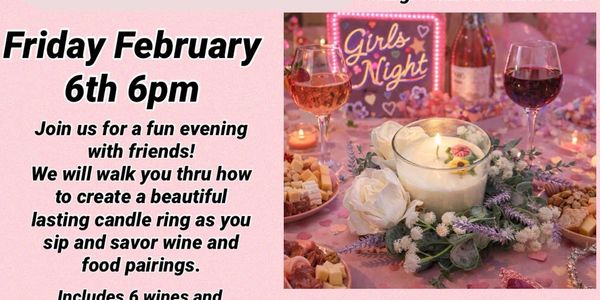 Grab your friends and join us for a fun evening of wine tasting and snack pairings as we walk you thru how to make a candle ring and send you home with a one of a kind candle from our new line of candles from Poured by Star!